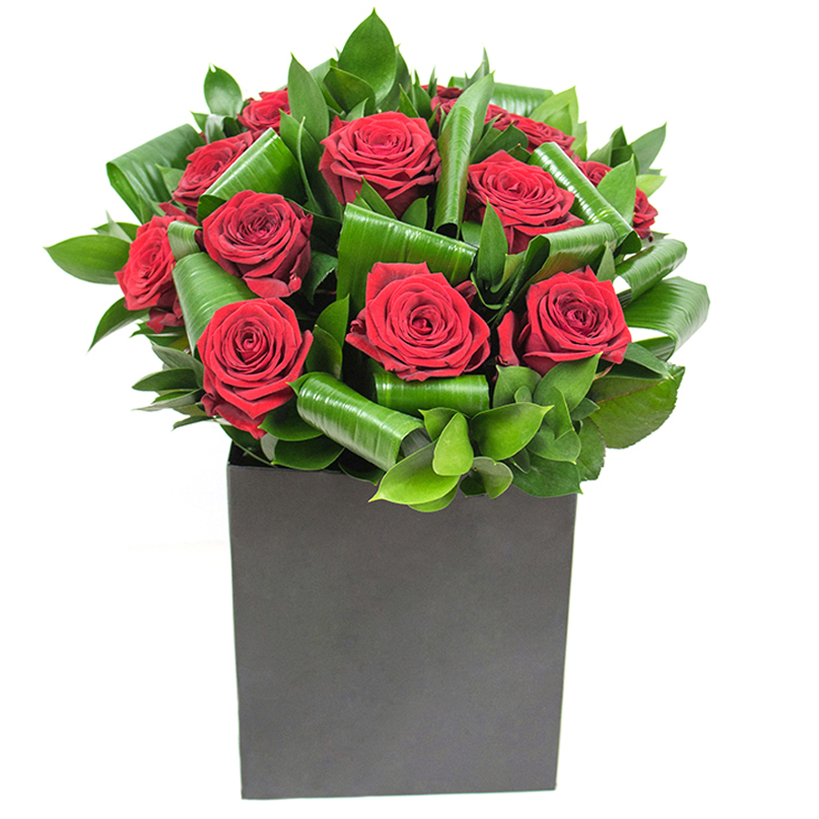 Step into a world of refined beauty with our radiant bouquet featuring dazzling red roses intertwined with lush aspidistra leaves and elegant ruscus. Each flower is carefully selected for quality and freshness, ensuring that your gift sparkles from the moment it arrives. Delivered as a bud, the blooms gradually open to reveal their full, luxurious charm, bringing an atmosphere of warmth and sophistication into any room.